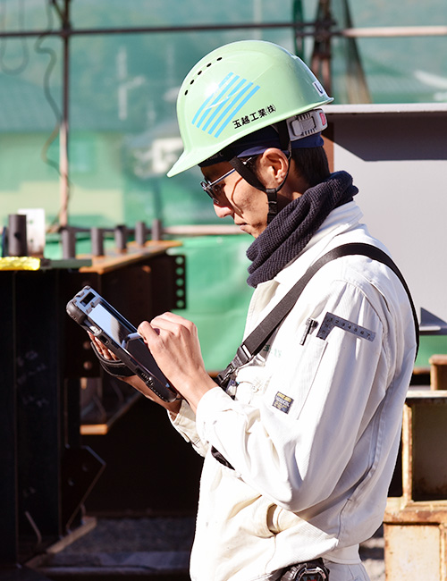 Recruit 採用情報 02 先輩社員 品質管理・出荷担当 2015年入社 製品の品質を支える責任感 趣味:ドライブ 先輩に聞いてみた Interview インタビュー 入社のきっかけは? 高校で就職活動を始めた頃、学校に送られてきていた求人票ではじめて今の会社のことを知りました。高校では普通科に所属していた私ですが、会社のことを調べていくにつれ鉄骨を扱う製造業の仕事に興味が湧き、就職したいと考えました。 仕事のやりがいは? 私の仕事は主に完成した製品が図面通りに仕上がっているかを検査し、製品に問題があれば修正内容を製作者に伝え工場へ持ち込むこと、また問題がなければ塗装や出荷の為の工区分けを施し、いつでも出荷できるよう準備することです。 これらの中で特に大変な仕事は製品検査です。「検査」と一言でいっても伝わらないかもしれませんが、検査は製品の形状が複雑になればなるほど、図面の解釈に時間を要します。また箇所によっては測定結果が図面上での数値とほんの数㎜違うだけで作り直しになることもあり、それを判断できるようになるまでには多くの知識や経験が必要となります。他にも溶接部に欠陥が入ってないか、溶接のサイズが基準値以上であるか等の外観のチェックも検査に含まれます。このように中々一筋縄ではいかない仕事ですが、難しければ難しいほどやり遂げたときの達成感は大きく、見つけることが困難な間違いを発見し、先輩方から褒めていただいたときは自分の仕事に誇りが持てます。 仕事で苦労した場面をどう乗り越えましたか? この会社に勤めて約10年となりますが、その中で何度か難易度の高い工事を経験しました。難易度の高い工事とは製品そのものが複雑な形状をしているだけでなく、製作・材料・品質全ての面で管理が徹底されていなければなりません。もちろん要求される寸法精度も極めて厳しく、膨大な数の検査箇所を正確に測定し、記録していく必要がありました。担当する箇所が多く、とても1人ではできないと悩んでいた時に周囲の皆が自分たちの作業を中断し、助けてくれたことで何とかやり遂げることができました。 今後の目標やキャリアプランは? まずは昨年落ちてしまった検査技術者の試験にリベンジし、合格した後も今以上に会社に貢献できるよう自らの技術を磨き、尽力していきたいと考えています。 Private プライベート 休みの日は気の向くまま遠くまで 今後のスキルアップの為に自主的に資格の勉強をしたり、愛車に乗って遠くまでドライブすることで気持ちをリフレッシュしています。 最後に、これから入社を考えている方へメッセージを! 工事内容によっては仕事量が多く、大変な時もありますが、玉越工業の社員はみんな優しいのでわからないことがあっても、温かく教えてくれます。少しでも興味があれば気軽に連絡してみてください。工場見学もウェルカムです!一緒にここで頑張りましょう、男女問わず歓迎します!! Voice 先輩社員の声 技術と人が育つ場所・・・先輩社員に聞きました! 01 先輩社員 設計部長 2014年入社 02 先輩社員 品質管理・出荷担当 2015年入社 03 先輩社員 梁組立班・班長 2010年入社 04 先輩社員 工場長 2014年入社 お問い合わせ 募集要項 エントリー